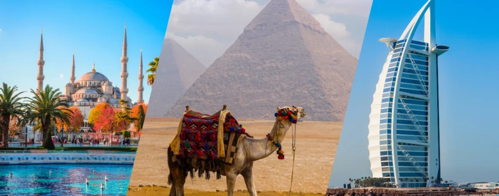 Este increíble circuito de 20 días te lleva a descubrir lo mejor de Turquía, Egipto y Dubái. Disfruta de un recorrido completo con vuelos internacionales y domésticos incluidos, alojamiento en hoteles 4* y 5*, pensión media y visitas guiadas en español. Vive la historia en Estambul y Capadocia, navega en un crucero por el río Nilo explorando templos milenarios, y maravíllate con las pirámides de Egipto. Finaliza tu aventura con la modernidad y el lujo de Dubái, incluyendo un paseo por el desierto, el majestuoso Burj Khalifa y un city tour por esta fascinante ciudad. Una experiencia cultural, histórica y emocionante que lo tiene todo.